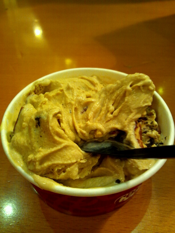 そして夜食はもちろんcoldstone。新発売のカシューナッツアイスクリームをベースに、胡桃とオレオをチョイス。ナッツの香りとサクサクした食感がカシューナッツアイスクリームのまろやかさと調和して絶品です!!