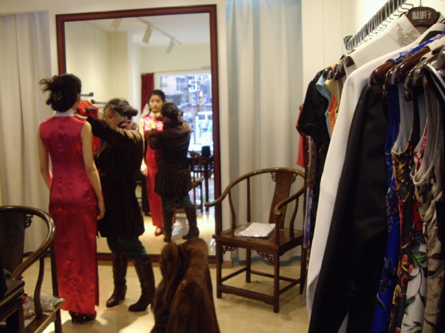 さてさて今日は待ちに待ったデザイナーさんとのご対面の日♪淑明子(シューミンズー)の旗袍を手掛ける黄(ホァン)先生が自らテスター用の旗袍を持参して来てくれました。