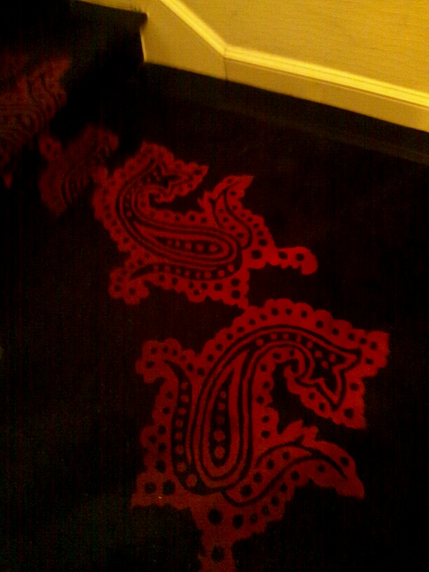 ふかふかした絨毯の模様にも注目。洋風建築の中にこういったオリエンタル風の絨毯等を置くのが大上海時代の特徴。