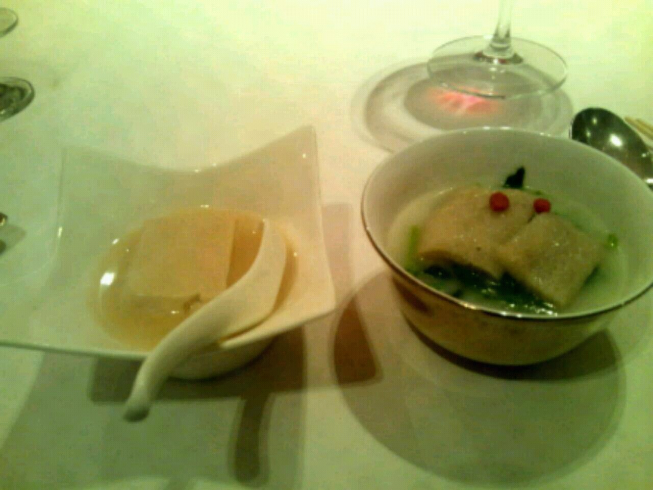 四品目は左からだし豆腐と小青菜(シャオチンツァイ)のコラーゲン煮。美容にいいので、女の子には嬉しい一品です♪